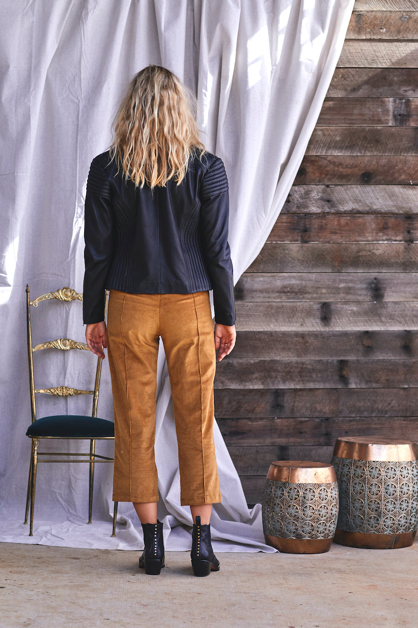 Top stitched Nappa leather. A buttery soft, 100% ethically sourced leather staple Jacket, with brass hardware detail. Perfect to team with jeans, or dress up for an evening out.