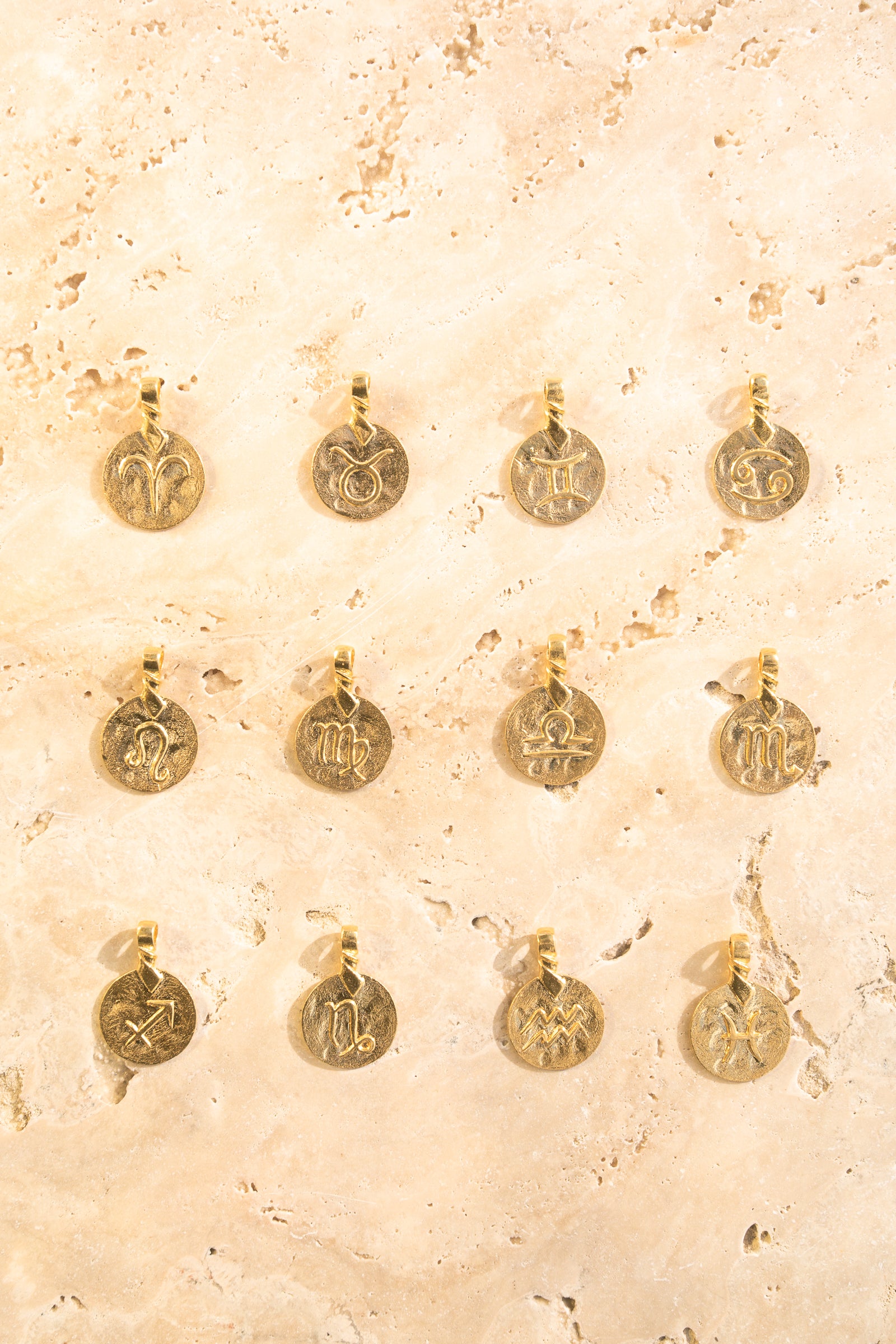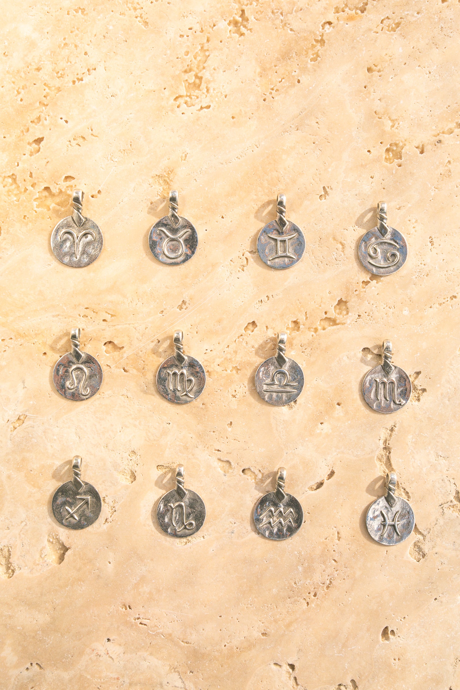 Find your unique zodiac sign pendant that represents your day of birth in your choice of Sterling silver or Gold Vermeil.